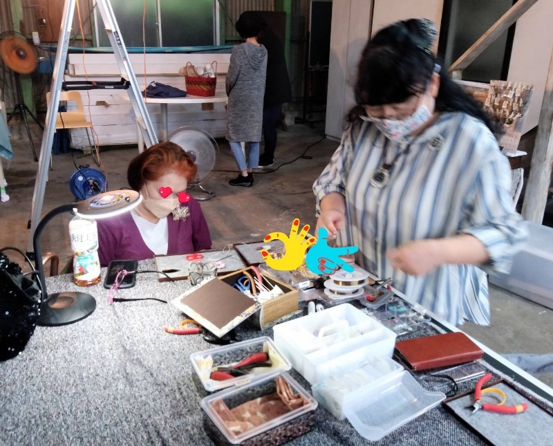 ニードルタティングレースちょこっと体験ピンブローチ仕上げも、ワイヤーピンアクセサリー体験ピンブローチ仕上げも、台風の雨間をぬって来て頂いた方に楽しんで貰えました。